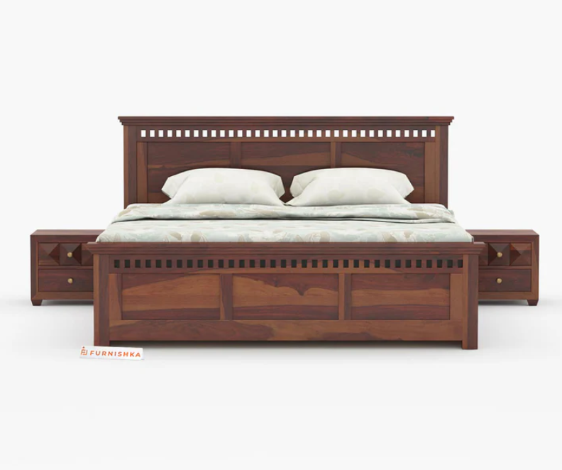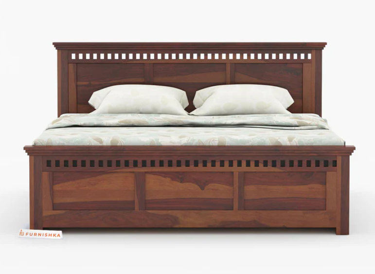 Crafted from high-quality Sheesham wood, this bed showcases natural grain patterns and rich texture. Sheesham is known for its strength, durability, and resistance to everyday wear, making it a long-lasting furniture choice.