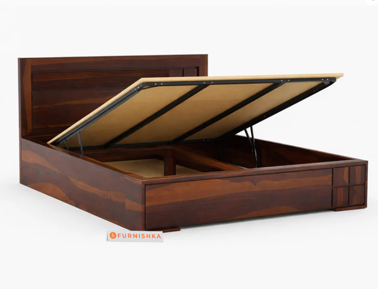 Amelia Sheesham wood Bed Hydraulic Storage King Size
