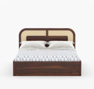 Hester Sheesham Wood Cane Bed With Hydraulic Storage – King Size