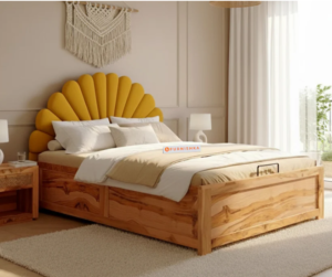 Built with genuine teak wood, the bed offers an unmatched level of sturdiness and resilience. Teak wood is known for its natural resistance to wear and tear, making it perfect for long-term use. The satin finish enhances its sophistication, ensuring that the mustard yellow shade remains vibrant over time.