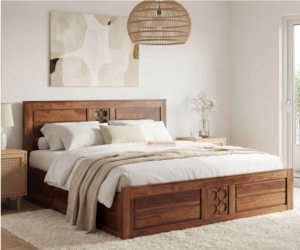 Symphony King Box Storage Bed in Acacia Wood Finish is a stylish and functional addition to any bedroom. Crafted with high-quality acacia wood finish, this bed combines elegant design with durability. Its built-in box storage provides ample space to keep your bedding, pillows, and other essentials neatly organized. Perfect for modern homes, it offers both comfort and practicality, making your bedroom look beautiful while maximizing storage efficiency.
